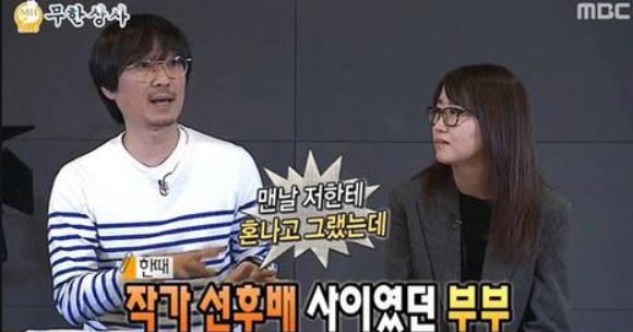 하지만 시간이 지나면서 좋은 사람이라는 결론에 이르렀고, 두 사람은 점차 가까워지면서 김은희가 장항준을 선배로서 존경하고 좋아해 정식 교제를 시작했다. 당시 남편 장한준은 작가들 사이에서 독보적인 인물로 유명했고, 남자친구인 장진 감독이 신춘문예에 당선되자 신이 나서 작가로 영화계에 입문해 나의 데뷔작이 됐다. ‘라이터를 켜라’로 영화감독으로.