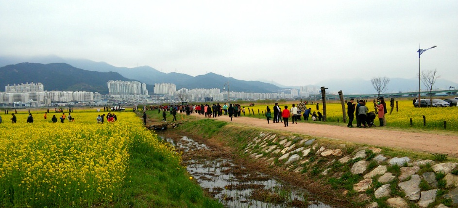 이렇게 드넓은 들판에 유채꽃을 심어 시민들의 구경거리이자 영혼의 안식처로 삼았다.