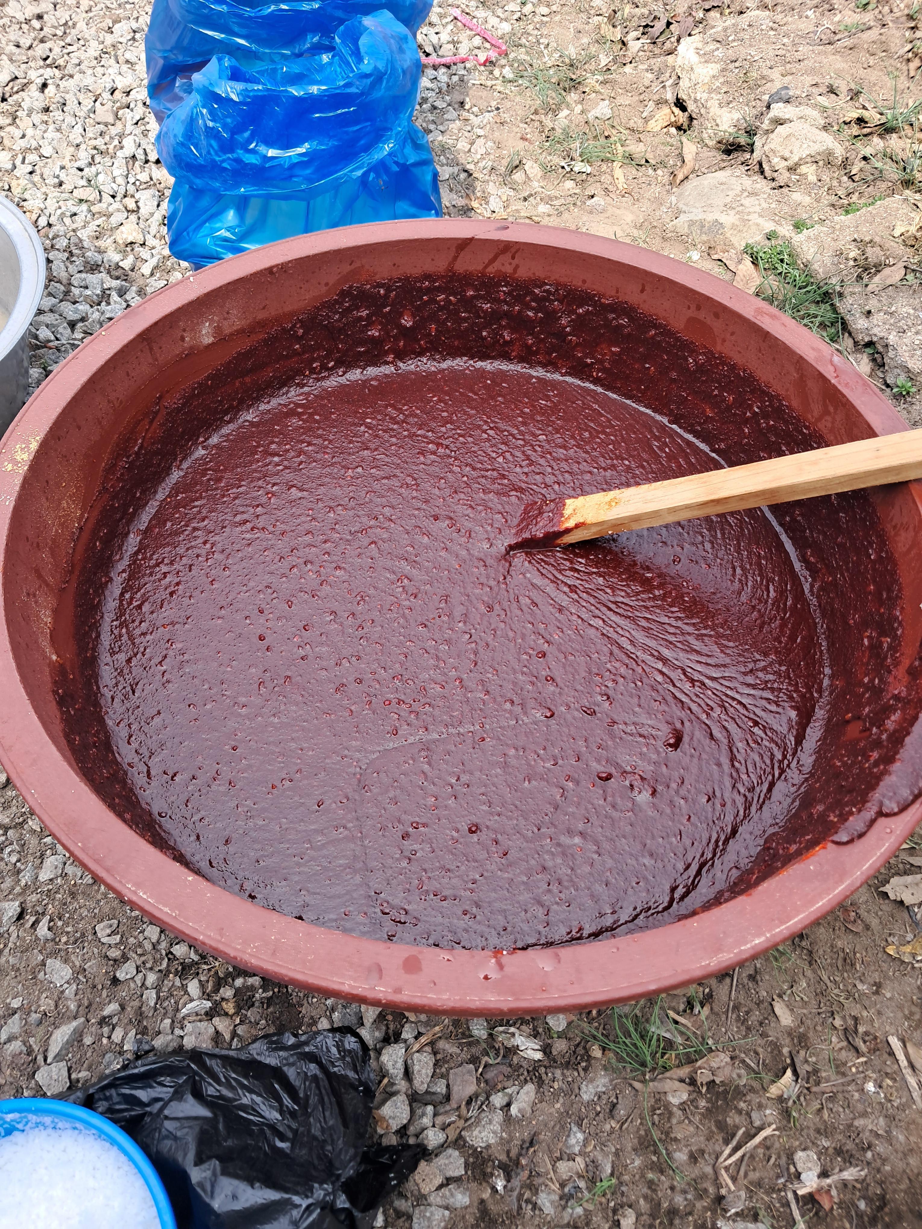 나는 아침 일찍 아들과 함께 파프리카 페이스트를 만들기 위해 시골로 갔다.